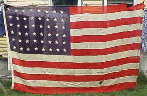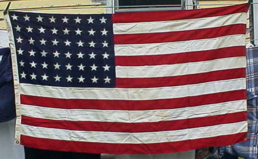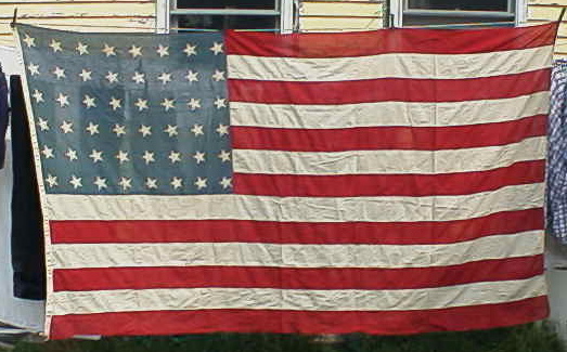 Notes: Stars all point to hoist; probably intended to be a hanging flag. This flag has been Sold to Philip Stevens May 2000.